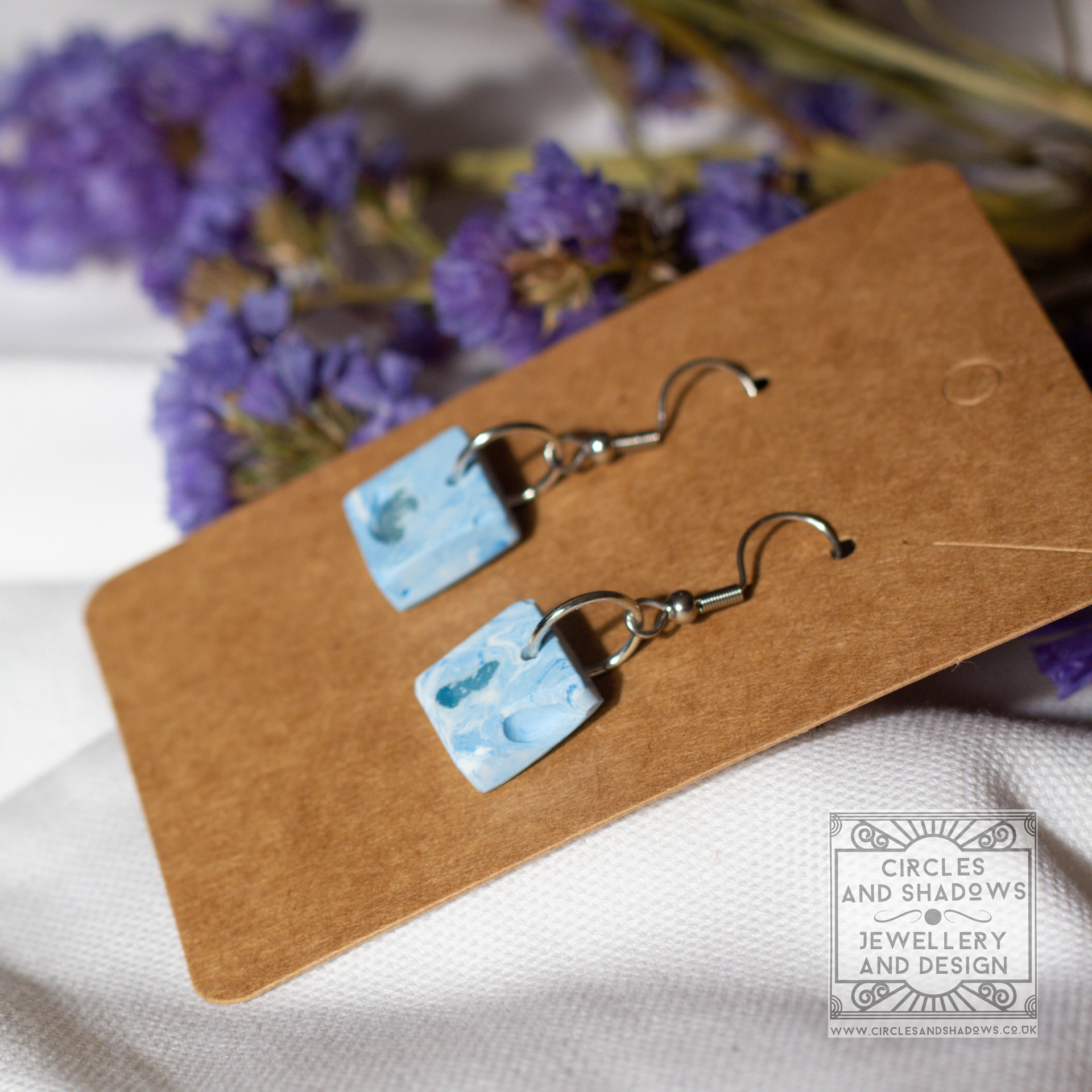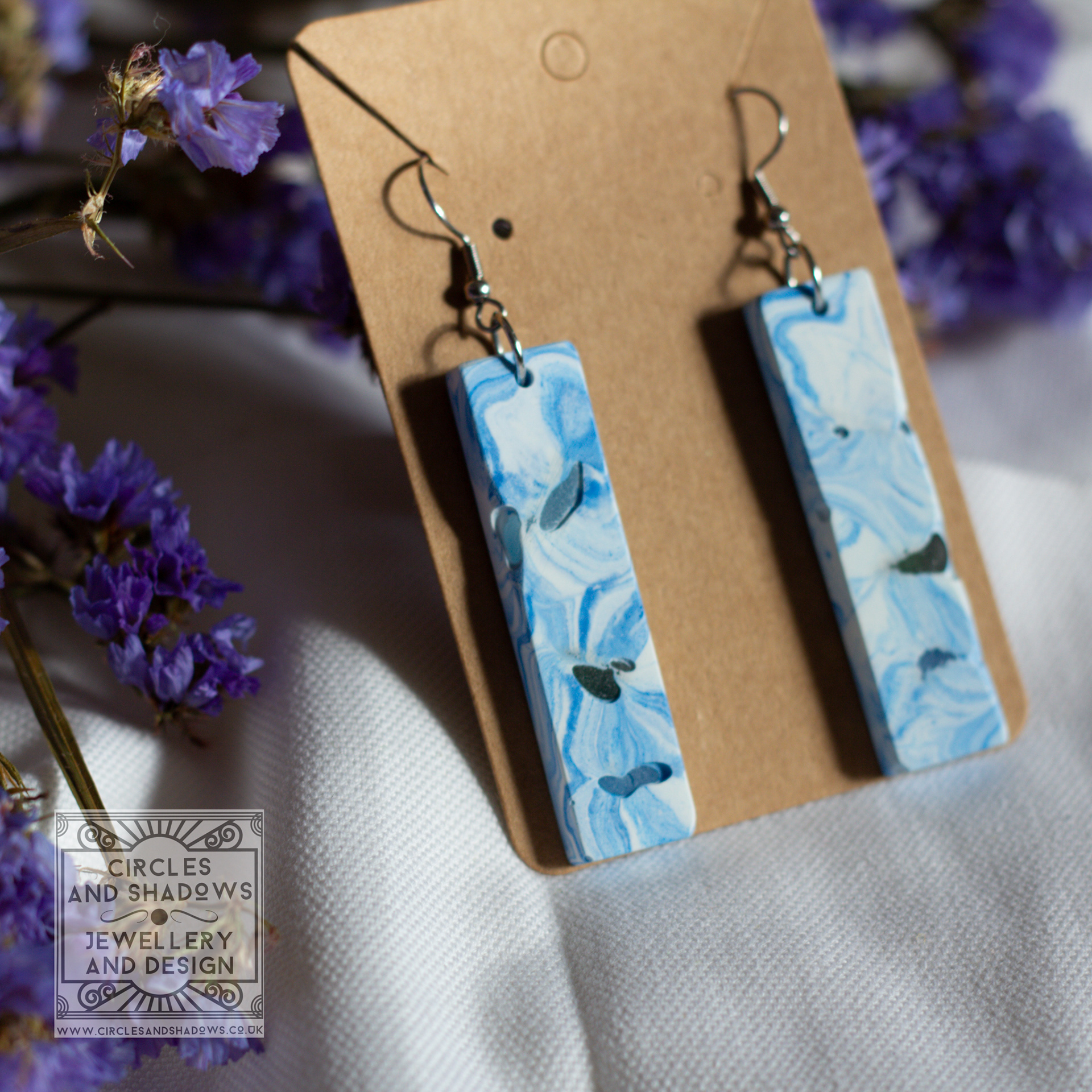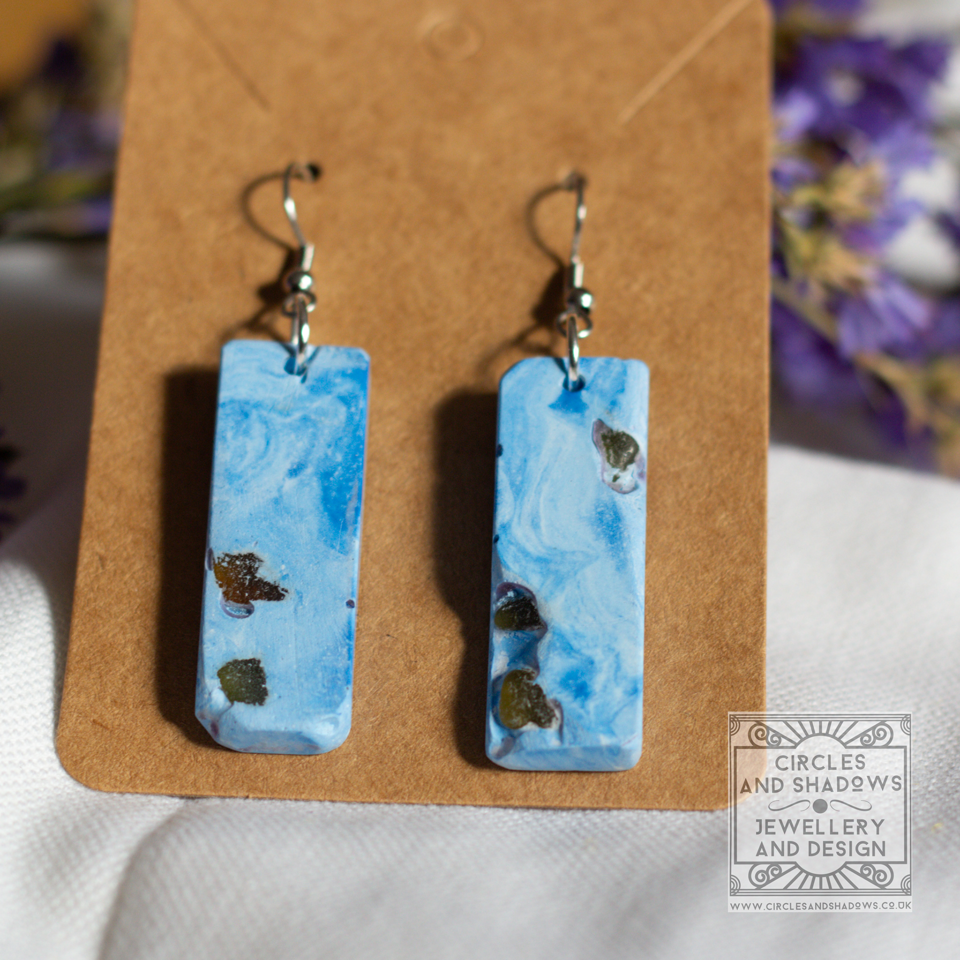 This collection is made from an eco resin. The sea glass pieces are embedded in the resin and then sections are uncovered to create an organic look and feel.